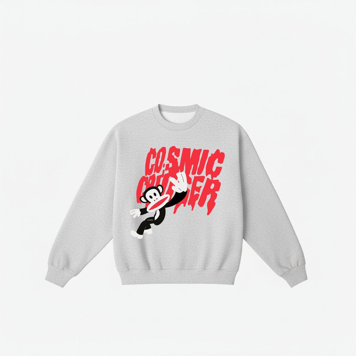 HEAVYWEIGHT FLEECE CREWNECK SWEATSHIRT IN VINTAGE HEATHER GREY. RELAXED FIT, CRAFTED FROM PREMIUM 14OZ COTTON FLEECE TO KEEP YOU WARM WHILE MAINTAINING STRUCTURE AND SOFTNESS. FEATURES COSMIC CRUISER GRAPHIC PRINTED ON THE FRONT. RIBBED COLLAR, CUFFS AND HEM ENSURE COMFORT AND INSULATION. CLEAN FINISH AND ESSENTIAL CREWNECK STYLING DESIGNED FOR DAILY WEAR.