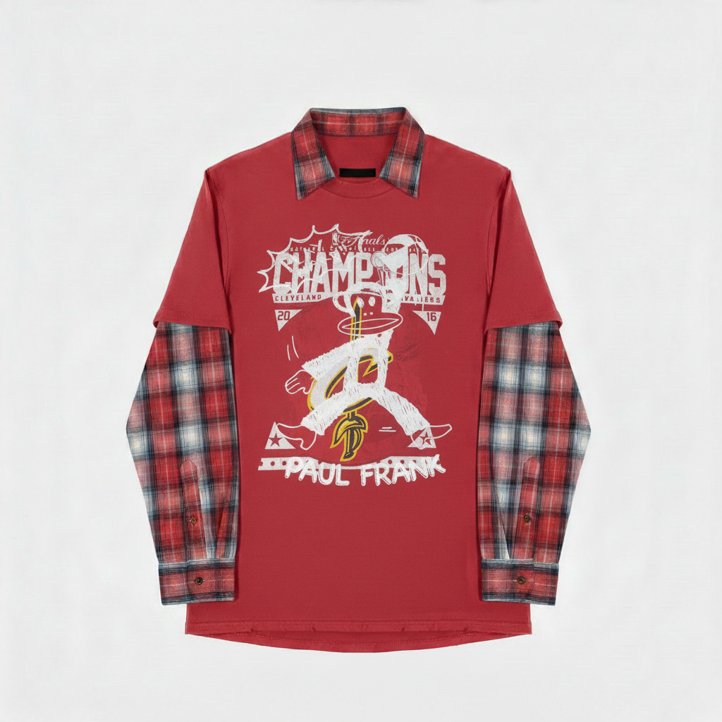 FRONT FEATURES AN ORIGINAL PAUL FRANK GRAPHIC APPLIED MANUALLY, LAYERED OVER THE CHAMPIONSHIP ARTWORK FOR A STRONG MIXED-MEDIA FUSION.